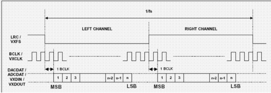 幀同步:LRCK信號在每個音頻幀開始時切換,標識左右聲道。