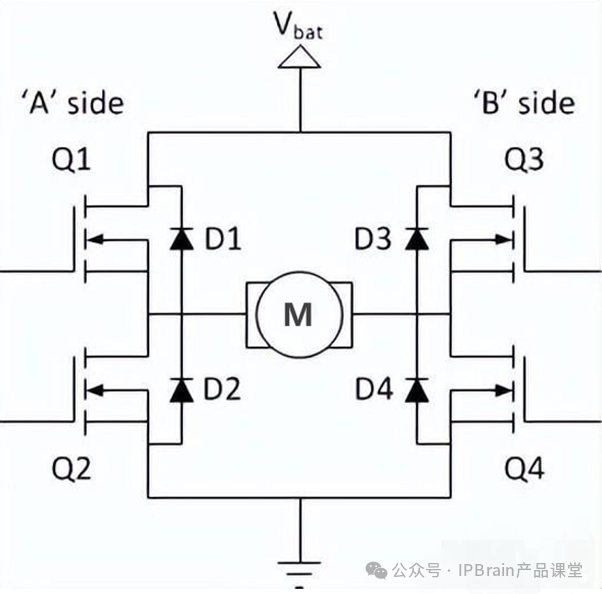當Q1、Q2、Q3、Q4均斷開時,電機處于慣性運動狀態。