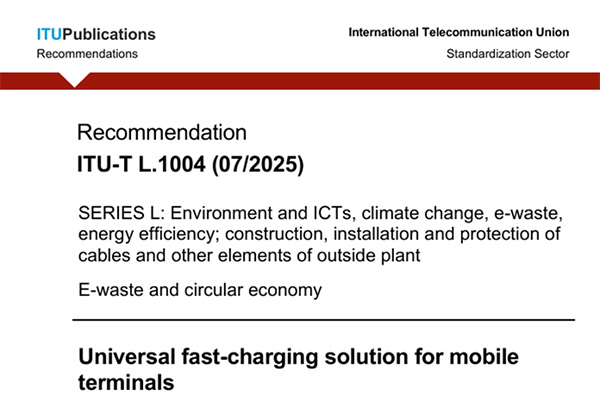 據(jù)中國(guó)信通院消息,由中國(guó)信息通信研究院(簡(jiǎn)稱(chēng)“中國(guó)信通院”)牽頭,聯(lián)合華為、OPPO、vivo共同制定的《移動(dòng)終端通用快速充電解決方案》(標(biāo)準(zhǔn)號(hào):ITU-T L.1004)已通過(guò)國(guó)際電信聯(lián)盟(ITU)的審議,并作為國(guó)際標(biāo)準(zhǔn)正式發(fā)布。這是國(guó)際電信聯(lián)盟史上首個(gè)為移動(dòng)終端制定的全球性通用快速充電標(biāo)準(zhǔn)。