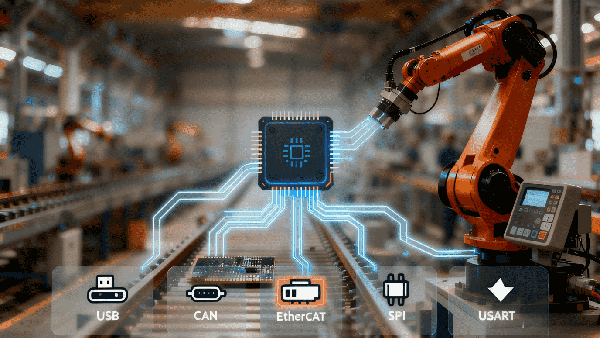 工業(yè)通信能力升級:芯片集成 ETherCat/USB/USART/CAN/SPI/I2C 等豐富的通信與控制接口,可實現(xiàn)高效數(shù)據(jù)交換,滿足工業(yè)自動化高實時通信需求。量產(chǎn)過程中,公司針對不同工業(yè)通信場景進(jìn)行了大量兼容性和穩(wěn)定性測試。
