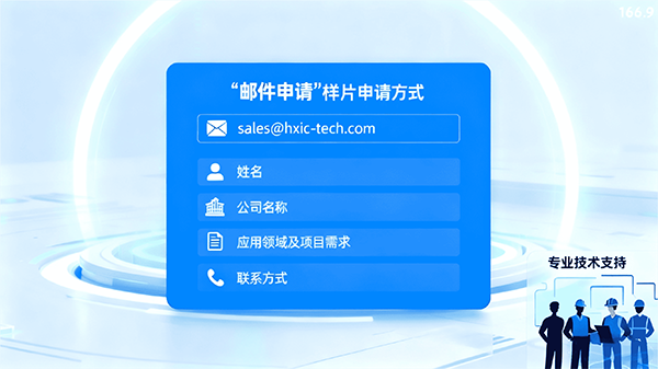 目前,HX64D10375 已正式開放樣片申請通道。在工業(yè)控制、汽車電子、機器人、無人機及新能源等領(lǐng)域的客戶與合作伙伴,可發(fā)送郵件至sales@hxic-tech.com申請樣片。為確保高效對接與服務(wù),發(fā)送郵件時需同步提供以下信息: