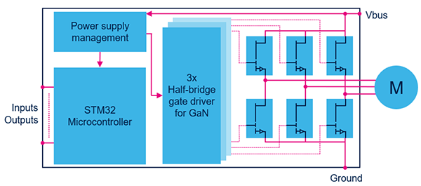 圖1. 基于 GaN 晶體管的逆變器的簡化框圖