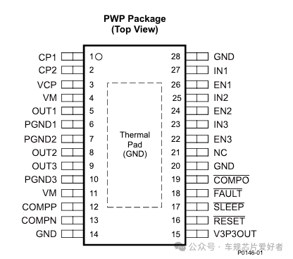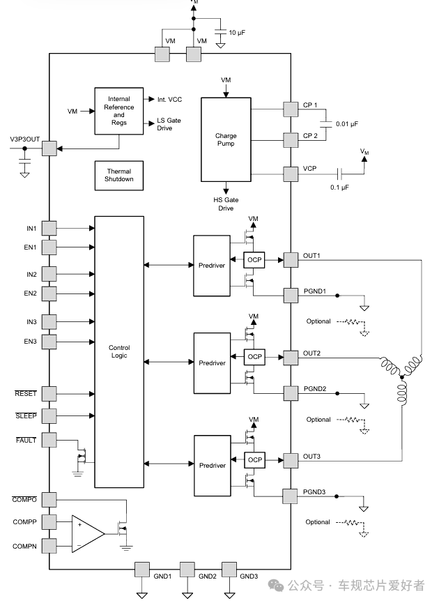 18V、3A三相無(wú)刷無(wú)感驅(qū)動(dòng)、180˚正弦,集成驅(qū)動(dòng)算法+預(yù)驅(qū)+MOS |