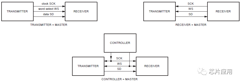 I2S是比較簡單的數字接口協議,沒有地址或設備選擇機制。在I2S總線上,只能同時存在一個主設備和發送設備。主設備可以是發送設備,也可以是接收設備,或是協調發送設備和接收設備的其它控制設備。在I2S系統中,提供時鐘(SCK和WS)的設備為主設備。圖3是常見的I2S系統框圖。