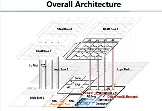 針對諸多行業挑戰,2024年計算機體系結構領域頂會ISCA上,清華大學集成電路學院尹首一教授帶領團隊,發表了題為《Exploiting Similarity Opportunities of Emerging Vision AI Models on Hybrid Bonding Architecture》的論文,首次通過混合鍵合技術實現邏輯芯片與DRAM的3D可重構,構建了具有超高帶寬的三維DRAM存算一體架構,從而提升AI芯片算力能效和面積效率。