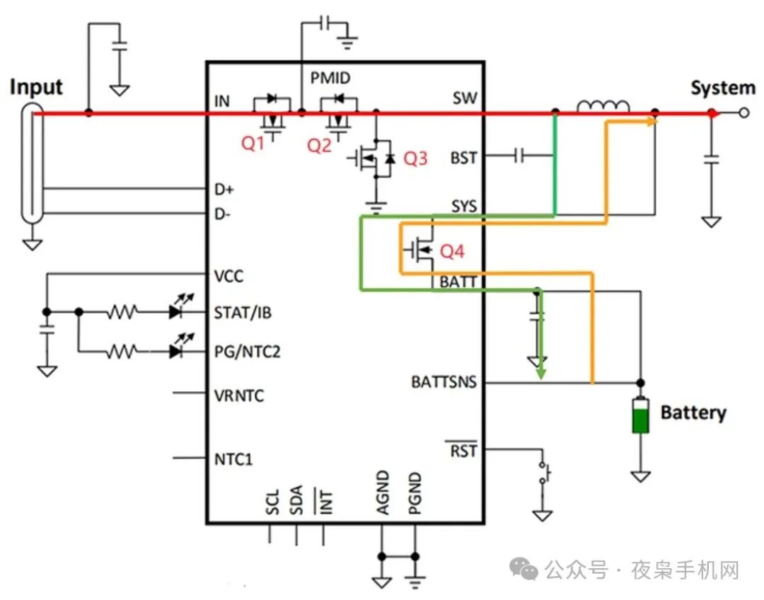 如果問手機上的Buck charger有什么獨特之處,那么路徑管理功能(Power Path Management)便是繞不開的一個話題。路徑管理功能決定了電能如何在充電器、電池和系統供電這三者之間高效、安全地流動。