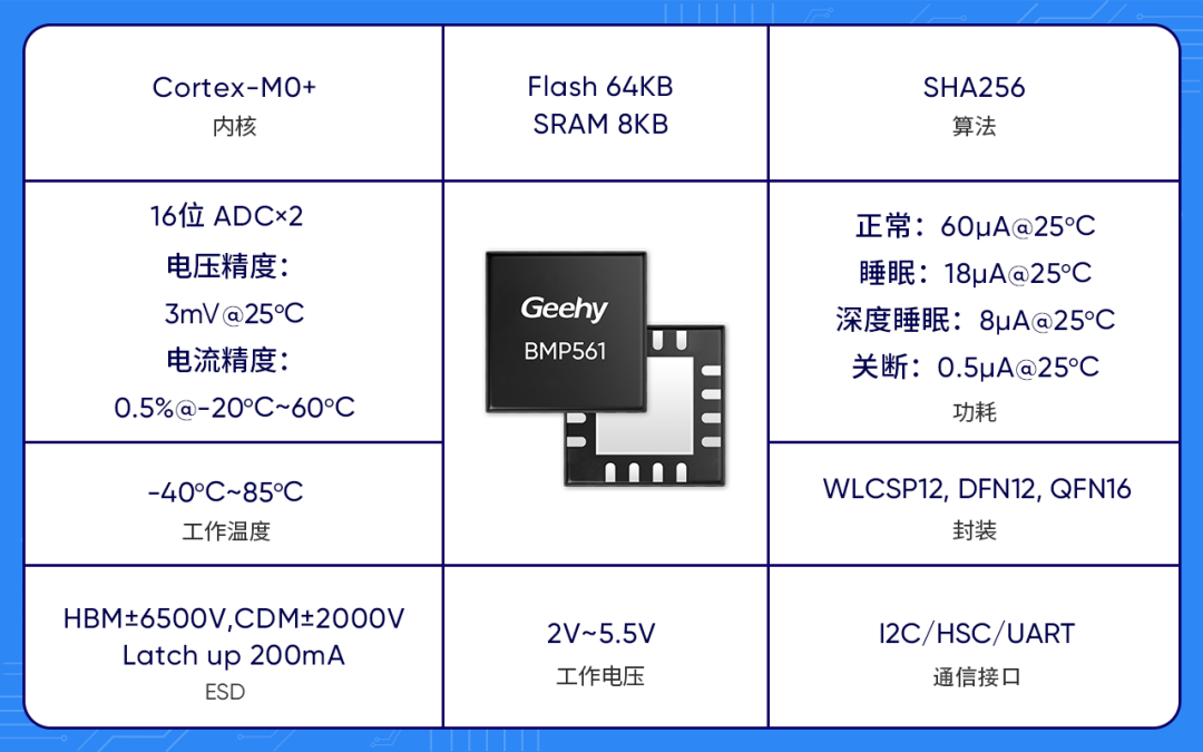BMP561:集成高精度ADC采樣電流和電壓,并進行電量估算;