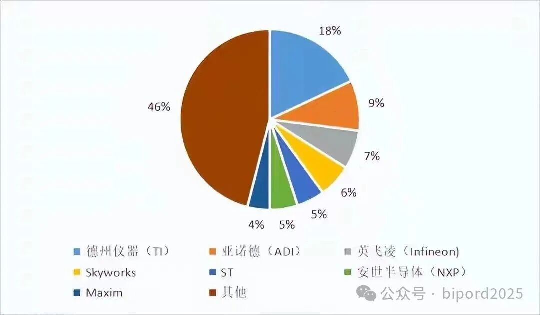 全球市場格局:TI全球電源管理芯片市占率約21%,與高通、ADI、英飛凌等前五大廠商合計占據71%的市場份額。國產廠商整體份額仍較低。