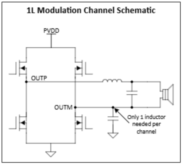 單電感(1L)調制技術是一項專有的汽車級創新技術,可將電感電容(LC)濾波器中的電感數量減少 50%,從而降低成本、節省印制電路板(PCB)空間,并最大限度減輕系統重量。