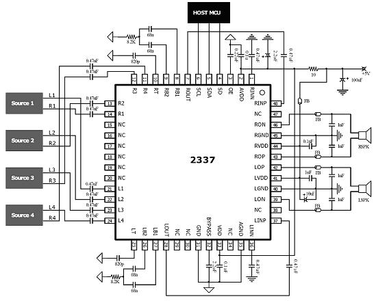 AX2337是一款音頻功放電路,集成了音質處理模塊和D類功放模塊,支持4通道信號輸入選擇。信號采用模擬方式進行處理,保證高性能和低功耗。電路支持數控音量調節、高音增強和低音增強功能,通過I2C接口進行通信。管教完全兼容PT2337