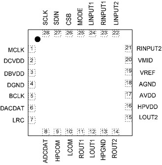 WM8988LGECO/V 28-lead QFN -25°C to 85°C