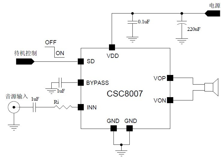 當前位置:首頁->產品展示->功放IC->CSC8007(7W單聲道AB類音頻功放IC)