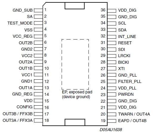 當前位置:首頁->產品展示->功放IC->STA559BW/STA559(2X0.7W+3W/2X1.4+3W/3W雙聲道數字I2S音頻輸入功放IC)