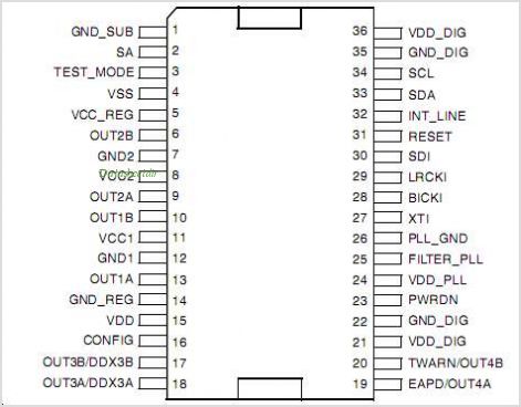 I2S數(shù)字輸入、集成EQ/DRC/音量控制2x30W立體聲D類音頻功放IC |
