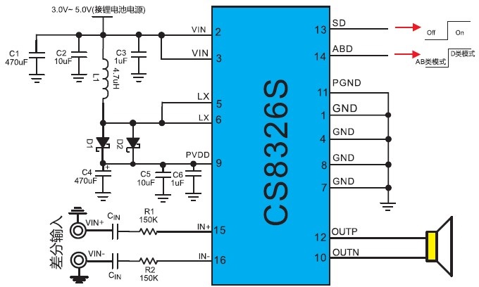圖1 CS8326S差分輸入應用圖