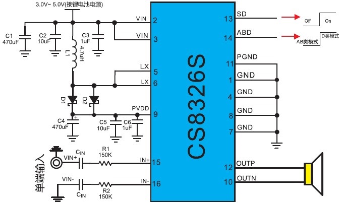 圖1 CS8326單端輸入應用圖