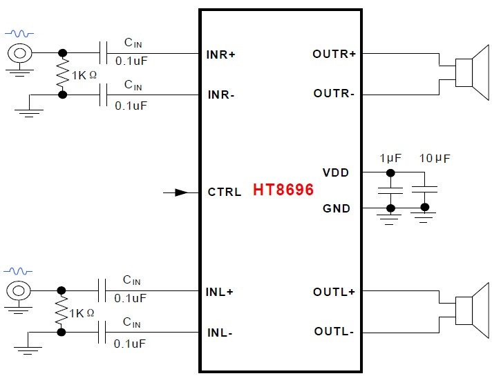 帶任意限幅的高保真D類/AB類切換10W立體聲功放IC,適用于兩節鋰電池串聯8.4V供電的音頻產品 |