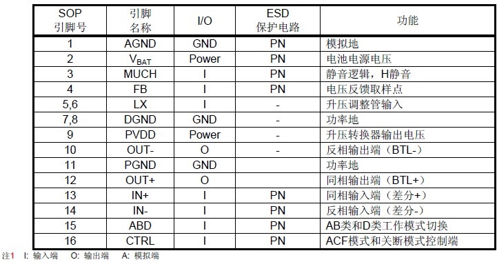 擴頻模式,靜音功能,三種防破音模式,AB/D切換,內置升壓,18W單聲道音頻功放 |