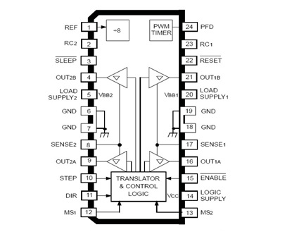當前位置:首頁->產品展示->馬達驅動IC/步進電機控制芯片->A3967/HR3967(內置轉換器的微步進電機驅動芯片)