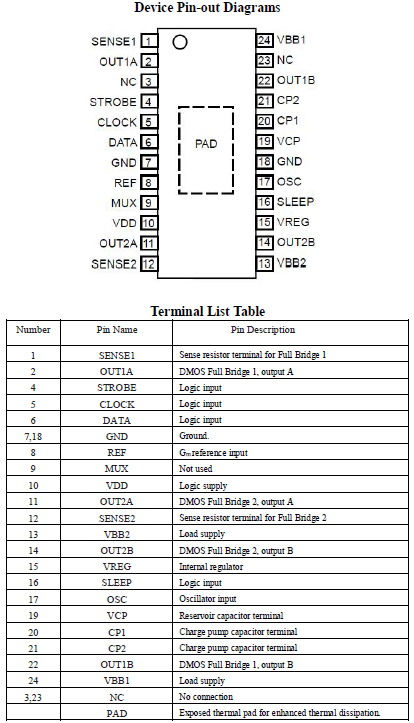 具有片上1/32微步進分度器的3A雙極步進電機驅動IC |