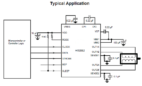 HR3967是一種新近開發出來、專門用于雙極步進電機的微步進電機驅動集成電路,能以全、1/2、1/4及1/8微步細分驅動馬達,輸出額定值能達到30V、±750mA 。 |