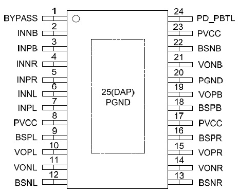 HT328 2X40W/24V/8Ω或80W/24V/4Ω TSSOP-28 4.5V-26V 免電感濾波2×30W D類立體聲音頻功放 AD52090/TPA3110