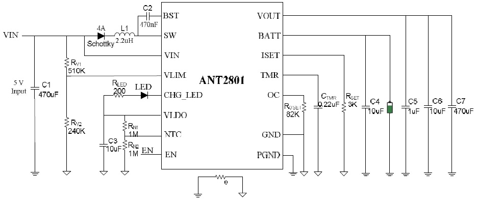 ANT2801典型應用電路(5V1A 適配器)