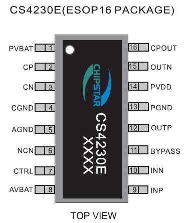 CS4230E供了ESOP16的封裝類型,真額定的工作溫度范圍為-40℃至85℃。