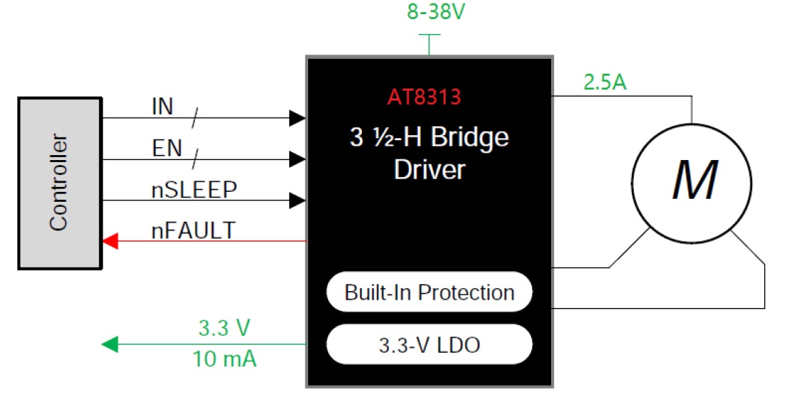 PWM控制,3.8A 刷式直流電機驅動器 |