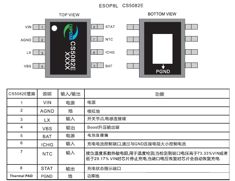 帶NTC功能、5V USB輸入、雙節鋰電池串聯應用、升壓充電管理IC,管腳兼容CS5080 |