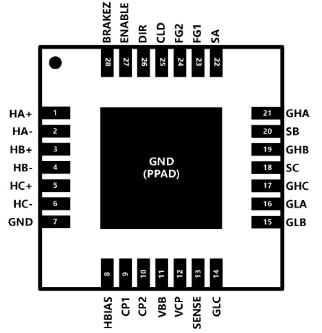 ACM6763 4.5V-32V、5A三相無刷無感驅(qū)動(dòng)、180˚正弦,集成驅(qū)動(dòng)算法+預(yù)驅(qū)+MOS QFN-28 4.5V-32V 三相180˚ 正弦, 無感或單霍爾,車規(guī)級(jí)無刷電機(jī)驅(qū)動(dòng) ACM6755