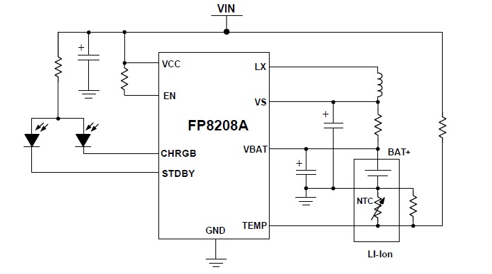 FP8208A 是一款開關(guān)模式降壓型鋰電池充電管理芯片,輸入電壓應(yīng)用適合5V 交流適配器,可