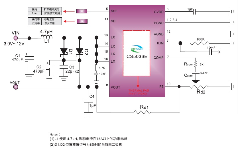 CS5028 輸入電壓:3-15V;輸出電壓最高可提供16V恒定的電壓輸出;最大可保證15A的輸入電流; ESOP-16 3V-15V 內置MOS,15A 高效率升壓DC-DC轉換器