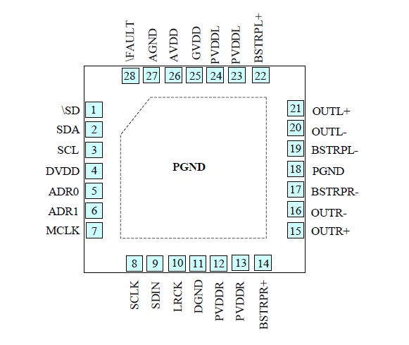 ・Power supply: -PVDD: 4.5V – 16V; -DVDD/AVDD: 3.3V