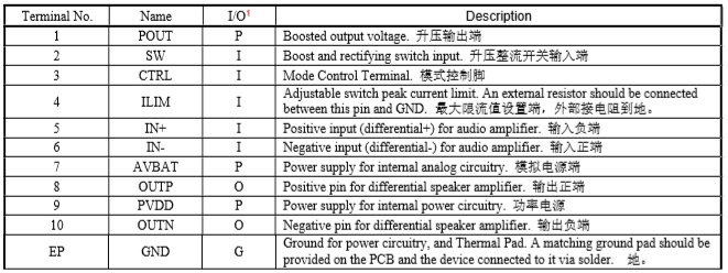 3W (VBAT=3.3V, RL=4Ω, THD+N<1%, 20-20kHz full band)