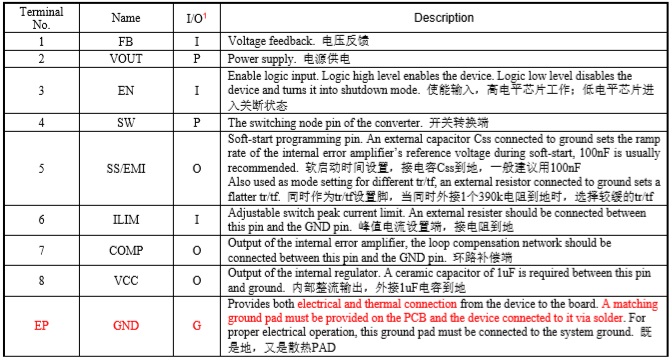 輸入電壓范圍VIN:2.7V-13V;輸出電壓范圍VOUT:4.5V-13V;內(nèi)部固定峰值電流:10A