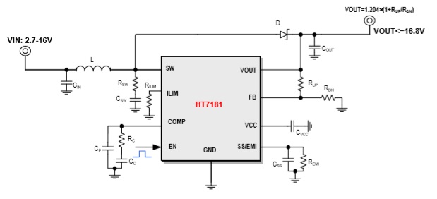 HT71782是一款高功率、全集成升壓轉(zhuǎn)換器,輸入電壓范圍VIN:2.7V-20V ;輸出電壓范圍VOUT:4.5V-20V ;可編程峰值電流:15A |