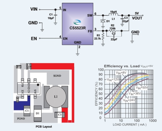 CS5523R是一款內(nèi)置功率MOSFET的單片降壓開關(guān)轉(zhuǎn)換器。在4.5V-60V寬輸入范圍內(nèi),其持續(xù)輸出電流可達(dá)到 0.6A,具有極好的負(fù)載和線性調(diào)整率。 |