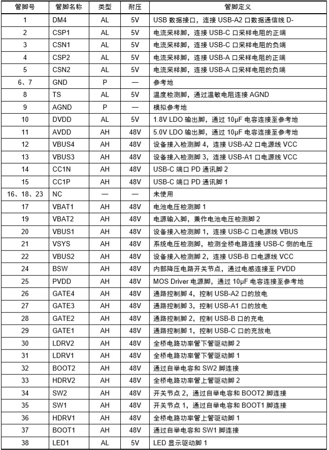 3-6節鋰電池的移動電源100W雙向快充IC,支持 PD3.0、QC3.0、AFC、FCP、 |