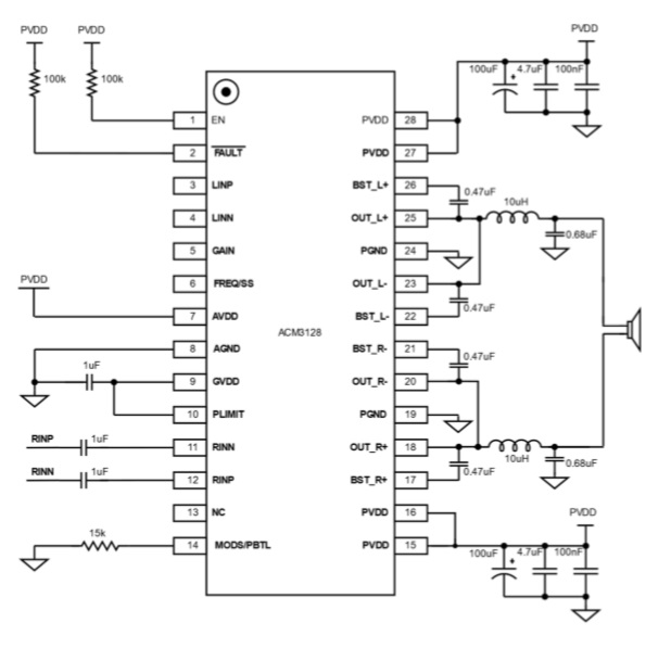 當(dāng)前位置:首頁(yè)->產(chǎn)品展示->功放IC->ACM3128(動(dòng)態(tài)調(diào)整升壓CLASS H功能、40W立體聲/80W單聲道D類(lèi)音頻功放IC) |