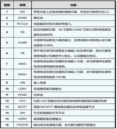 輸入電壓范圍VIN:2.7V-13V;輸出電壓范圍VOUT:4.5V-13V;內部固定峰值電流:10A |