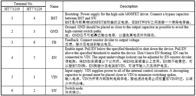 HT77221: 2A降壓,內置100mΩ和60mΩ功率管 ;