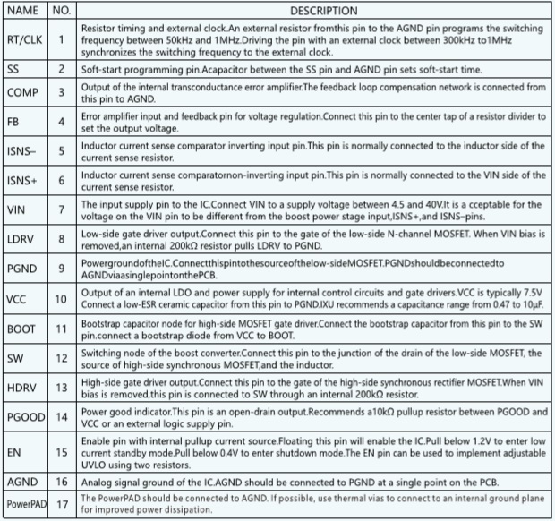 輸入電壓范圍VIN:2.7V-13V;輸出電壓范圍VOUT:4.5V-13V;內部固定峰值電流:10A |