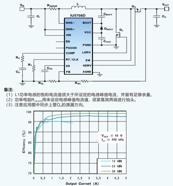 IU5708D包括一個7.5V柵極驅動電源, 此電源適合于驅動很多類型的MOSFET,同步整流針對高電流應用而啟用高效率,而且無損耗電感器DCR進一步提升了效率,是靈活的高功率密度且高可靠性的升壓轉換器解決方案。