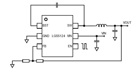 LGS5124是一個寬輸入電壓范圍、高轉換效率的同步降壓轉換器。LGS5124提供高達3A的負載電流能力,輸出電壓在寬范圍內可調。內部集成的峰值電流控制模式允許外部電路使用小型器件(包括陶瓷電容和小型封裝電感), 同時低輸出電壓紋波的特點使得LGS5124在高精度、低噪聲的使用中發揮重要作用。內部集成的開關MOSFET、環路補償以及軟啟動,極大減少了外部器件的數量,可以實現小尺寸方案設計。LGS5124具備極快的負載瞬態響 應和極高的系統轉換效率使其成為多種工業級和消費級應用的理想選擇。