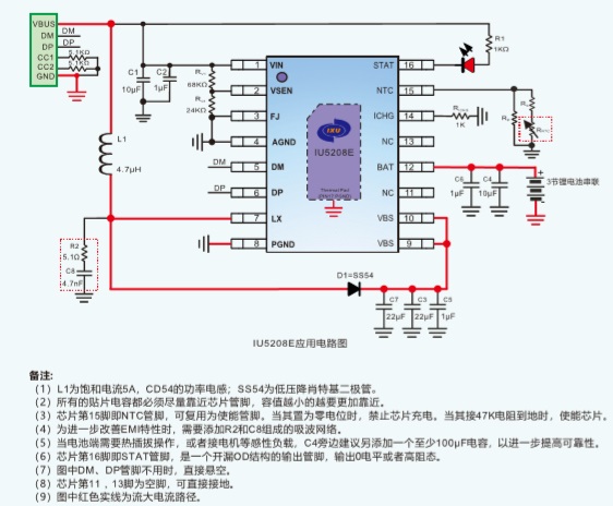 IU5208可以根據當前電池電壓,通過DP/DM來向輸入端申請快充電壓;
