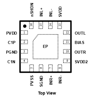 器件內(nèi)部集成電荷泵產(chǎn)生負(fù)電壓,器件輸出級(jí)由輸入正電壓和該負(fù)電壓驅(qū)動(dòng),使得輸出偏置在零電位,省去了大尺寸、容易引入失真的輸出耦合電容。