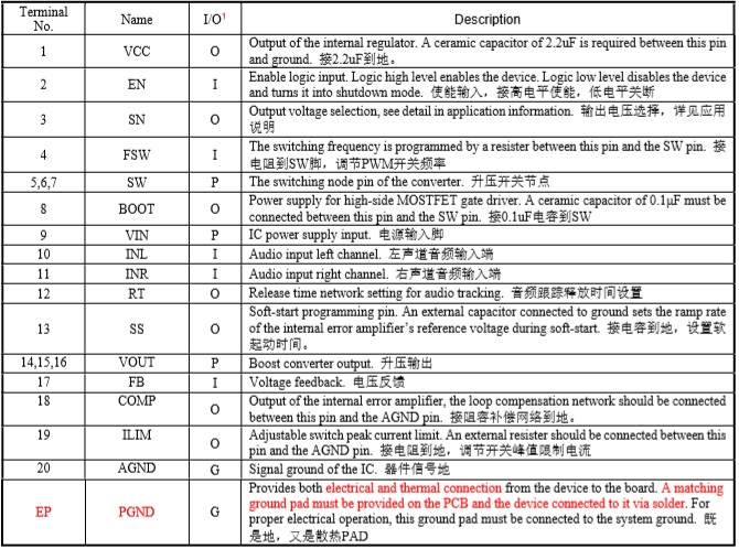 產品功能: 實時音頻信號跟蹤的18V, 15A全集成同步升壓轉換器 ,輸入電壓2.7V-20V,最高輸出電壓20V;可編程峰值電流:15A ;。該方式供電相比直接升壓供電方式, 電池續航時間預計可提升50%以上。
