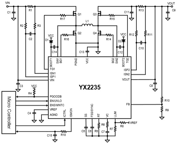 YX2235是一顆大電流同步升降壓控制器,輸入電壓范圍:4V至35V;輸出電壓范圍:2V至35V;CC/CV調節功能使其適用于電池充電系統。 |