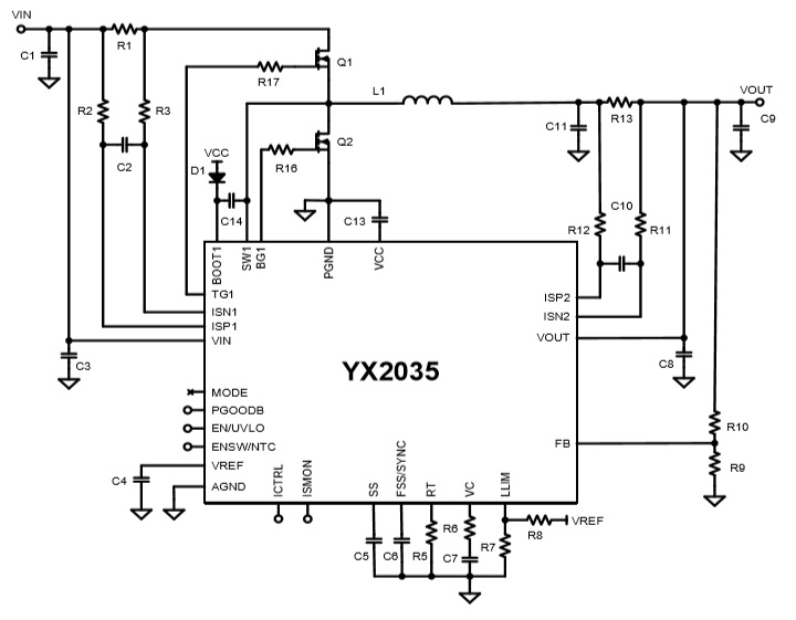 YX2065是一款同步升壓控制器,寬輸入電壓范圍:4V至65V;最高輸出電壓65V |